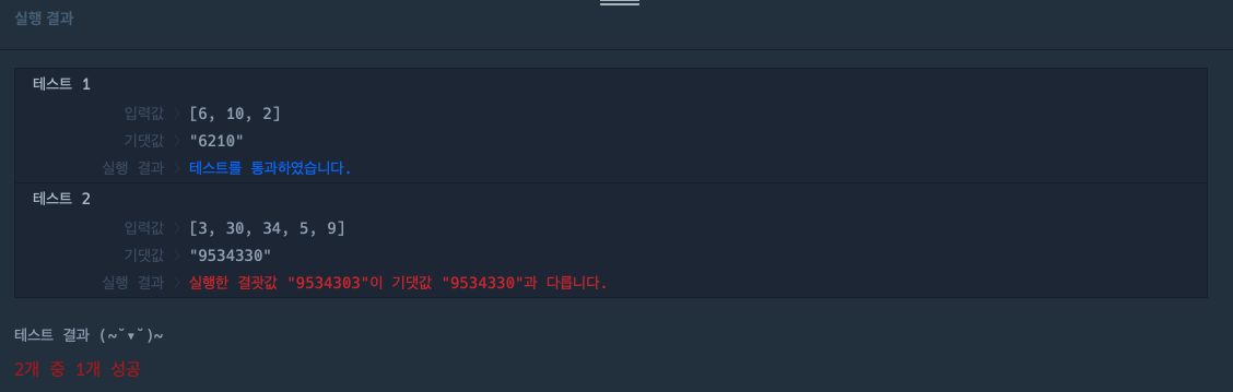 이를 이어 붙이면 34330이 되기 때문에 테스트 결과에서 실패하는 결과가 나타났다.