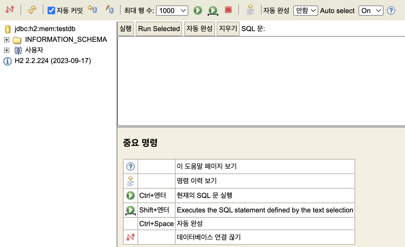 아직까지 H2콘솔 다루는 방법이나 데이터베이스에 대한 지식이 미흡한 것 같다.