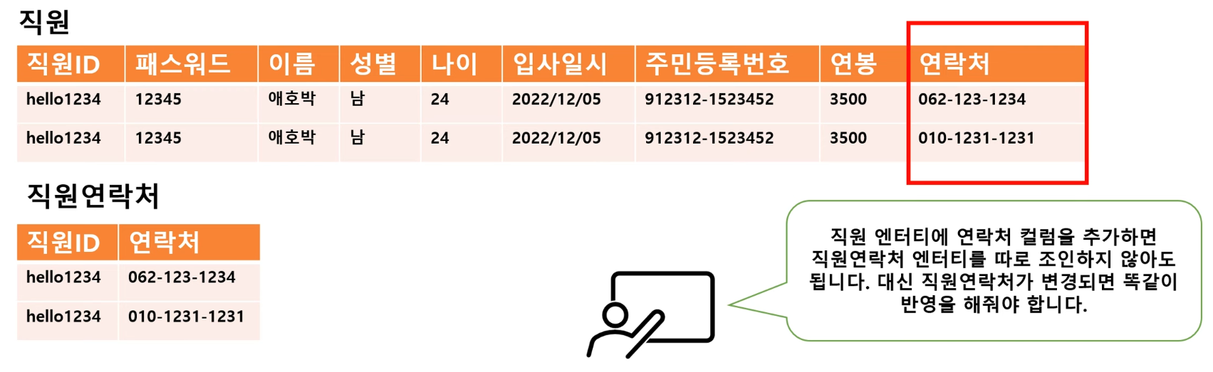 단, 정규화가 대체적으로 좋은 것이며, 경우에 따라서 반정규화(중폭 포함, 엔터티 합침)가 더 이득일 수도 있음