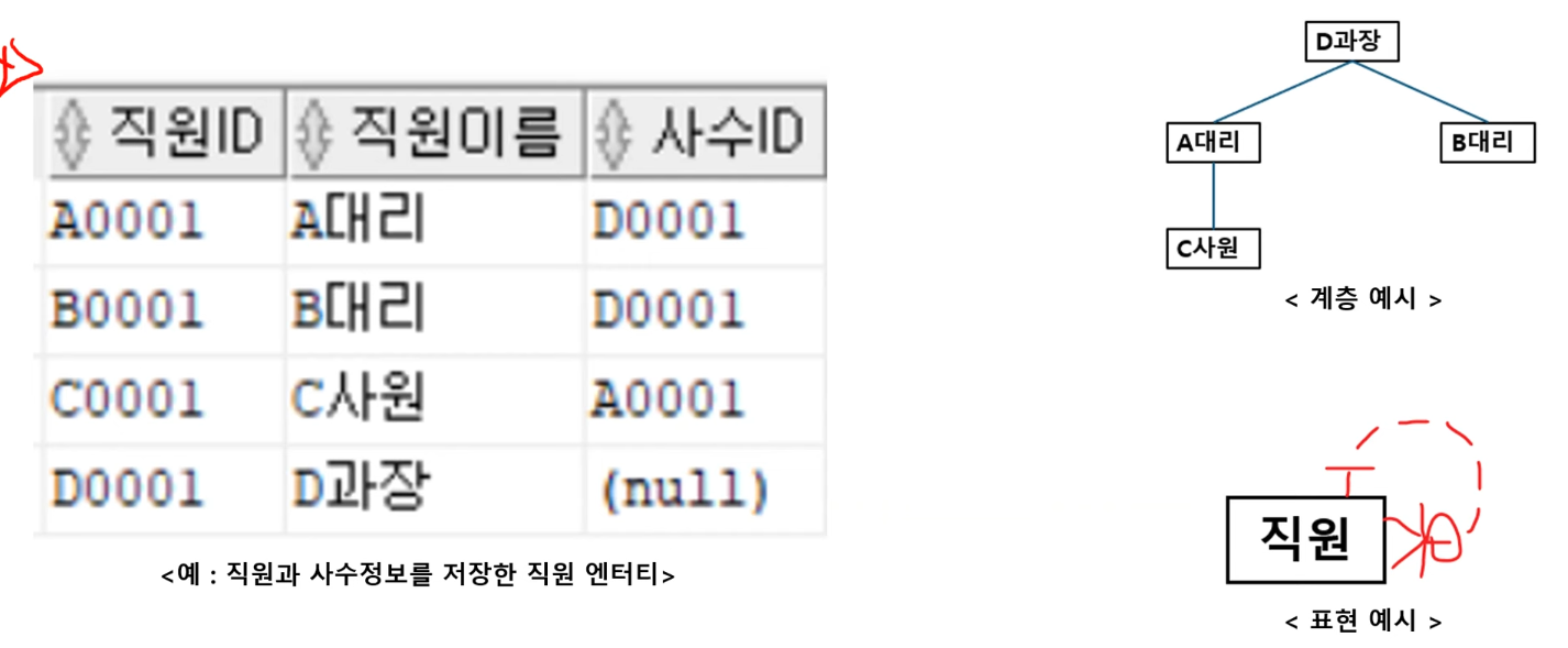 : 계층구조를 가진 데이터를 저장한 모델 자기 자신의 엔터티와 관계가 발생하는 경우