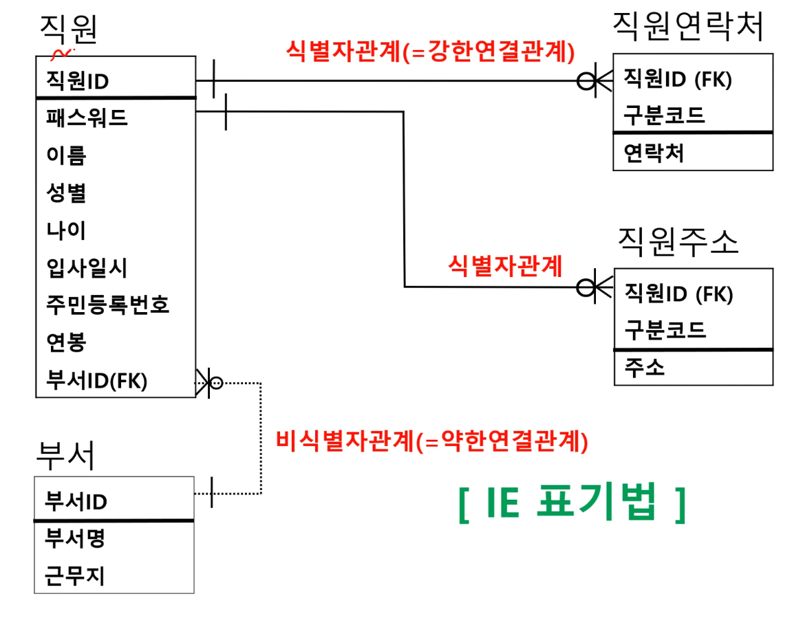IE: 실선(중복 X, 빈값 X(존재성))이 강한 연결관계
