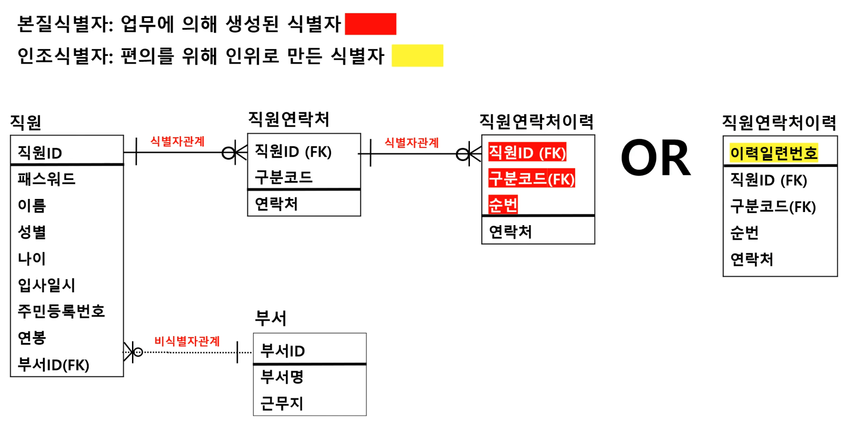 - 스스로생성여부: 내부식별자 vs. 외부식별자
