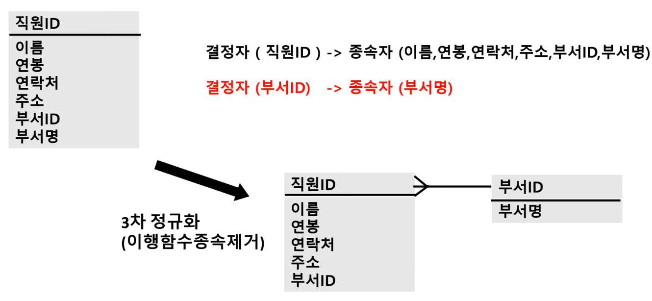 ex) 결정자(아이디) → 종속자(이름, 나이, 연봉, 부서ID, 부서명): 아이디가 나머지 모든 칼럼을 함수 종속한다.