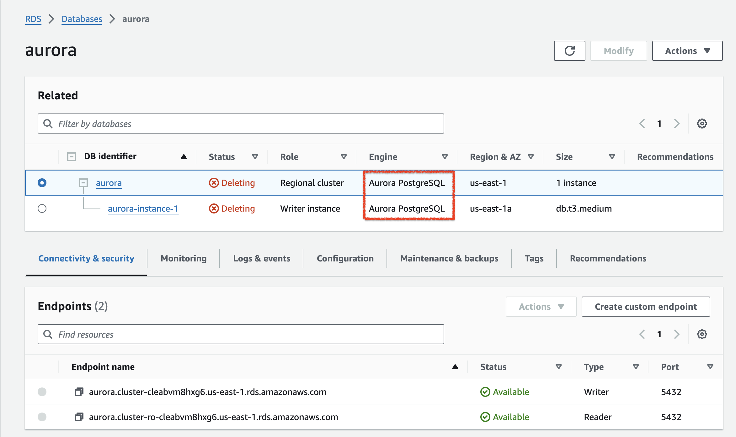 Engine type - Aurora (MySQL Compatible)를 선택하지 않았기 때문이다.