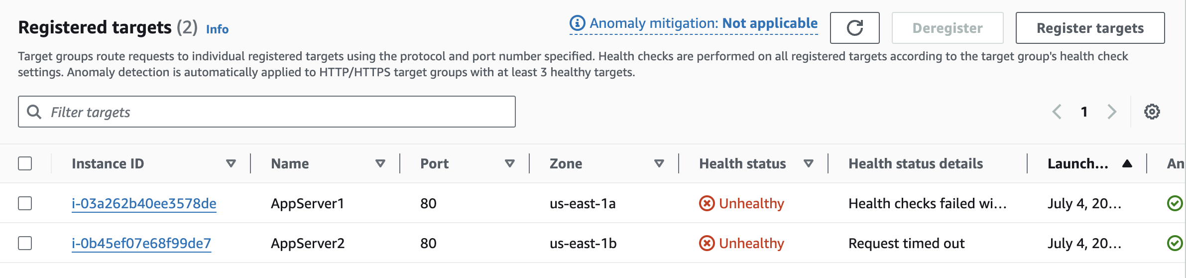Amazon RDS 데이터베이스와 Application Load Balancer을 생성하는 부분까지는 에러가 없었다.