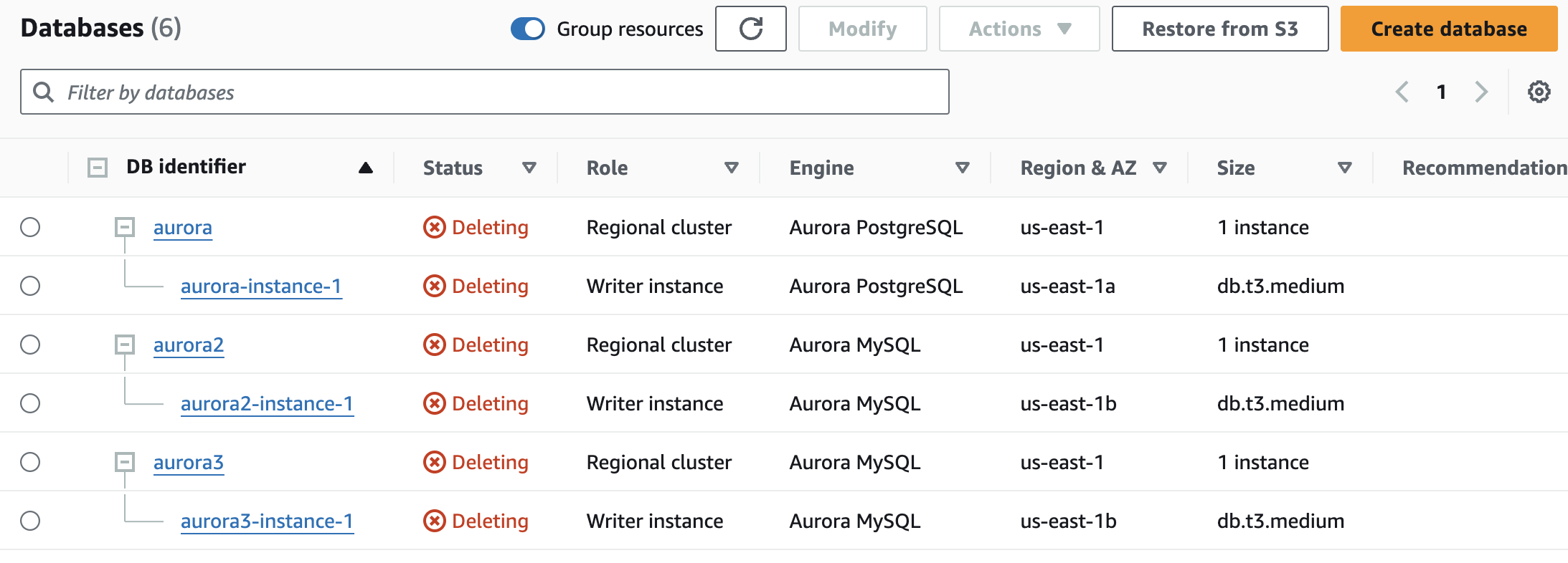 내가 과도하게 데이터베이스를 만들어서 과요금으로 자동으로 삭제하는 줄 알았다...ㅎㅎ