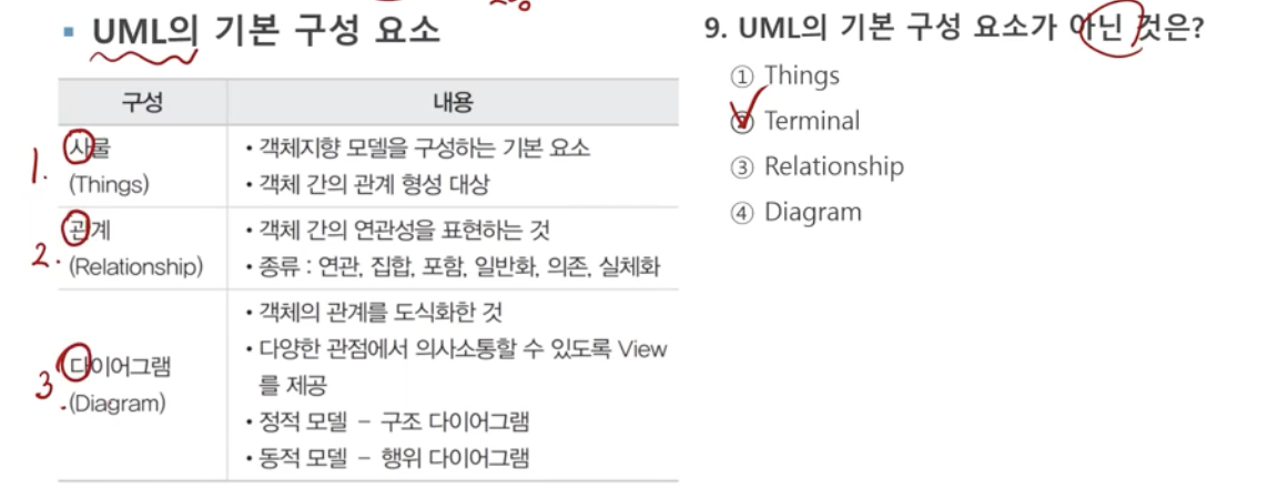 - 객체 모델링(=정보 모델링): 시스템에서 요구되는 객체를 찾아내, 속성과 연산 식별 및 객체 간의 관계를 규정하여 객체를 다이어그램으로 표시