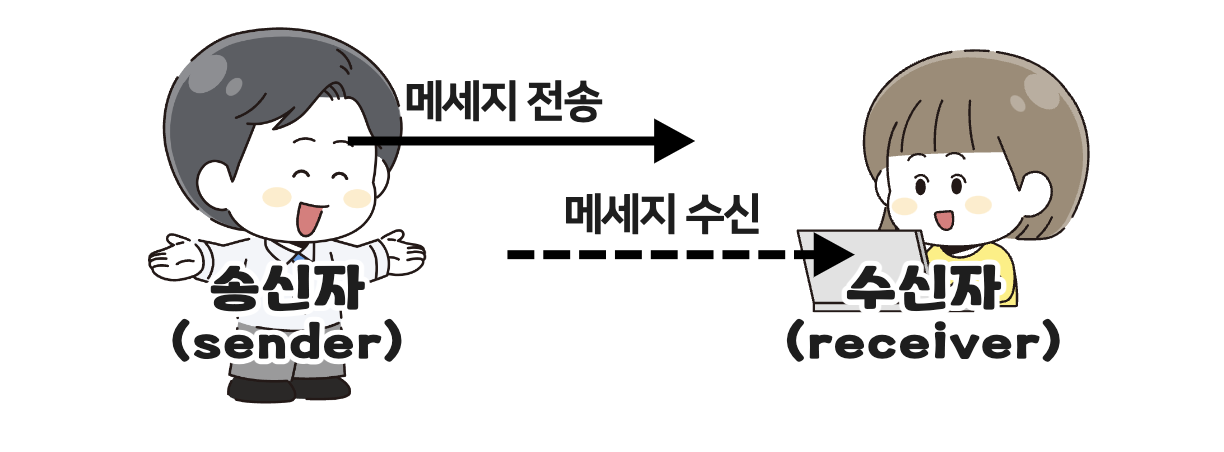 메세지를 전송하는 객체를 송신자(sender)라고 부르고 메세지를 수신하는 객체를 수신자(receiver)라고 부른다.
